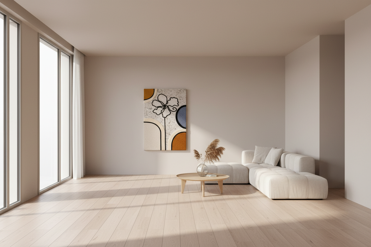 Bu pano; salon, yatak odası, antre veya sakin yaşam alanlarında tek başına güçlü bir odak noktası oluşturur.