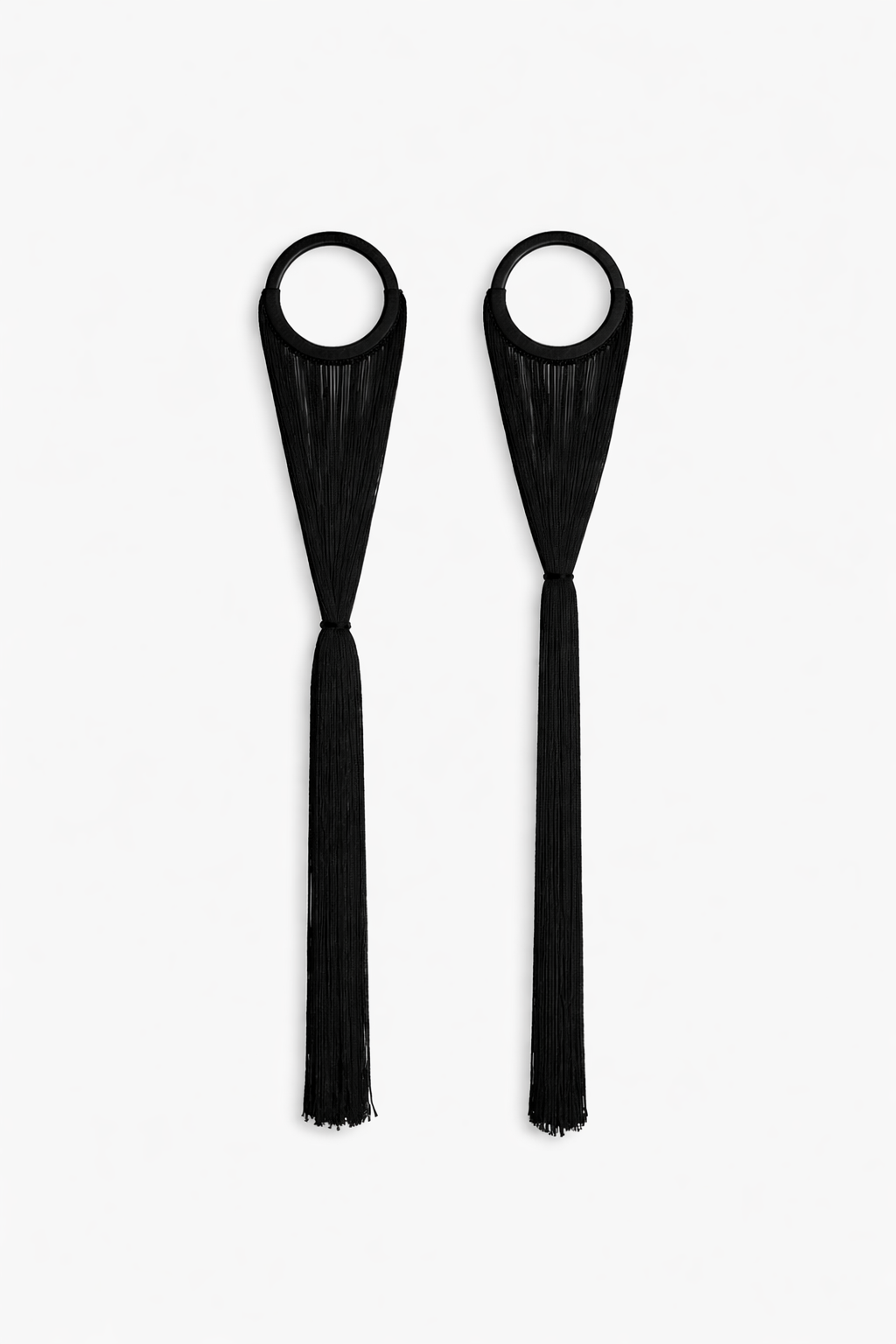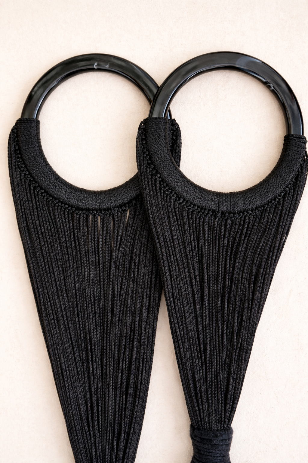 İnce örgülü iplerin akıcı formuyla mekâna ritim ve derinlik katan sade ve güçlü bir duvar aksesuarı.